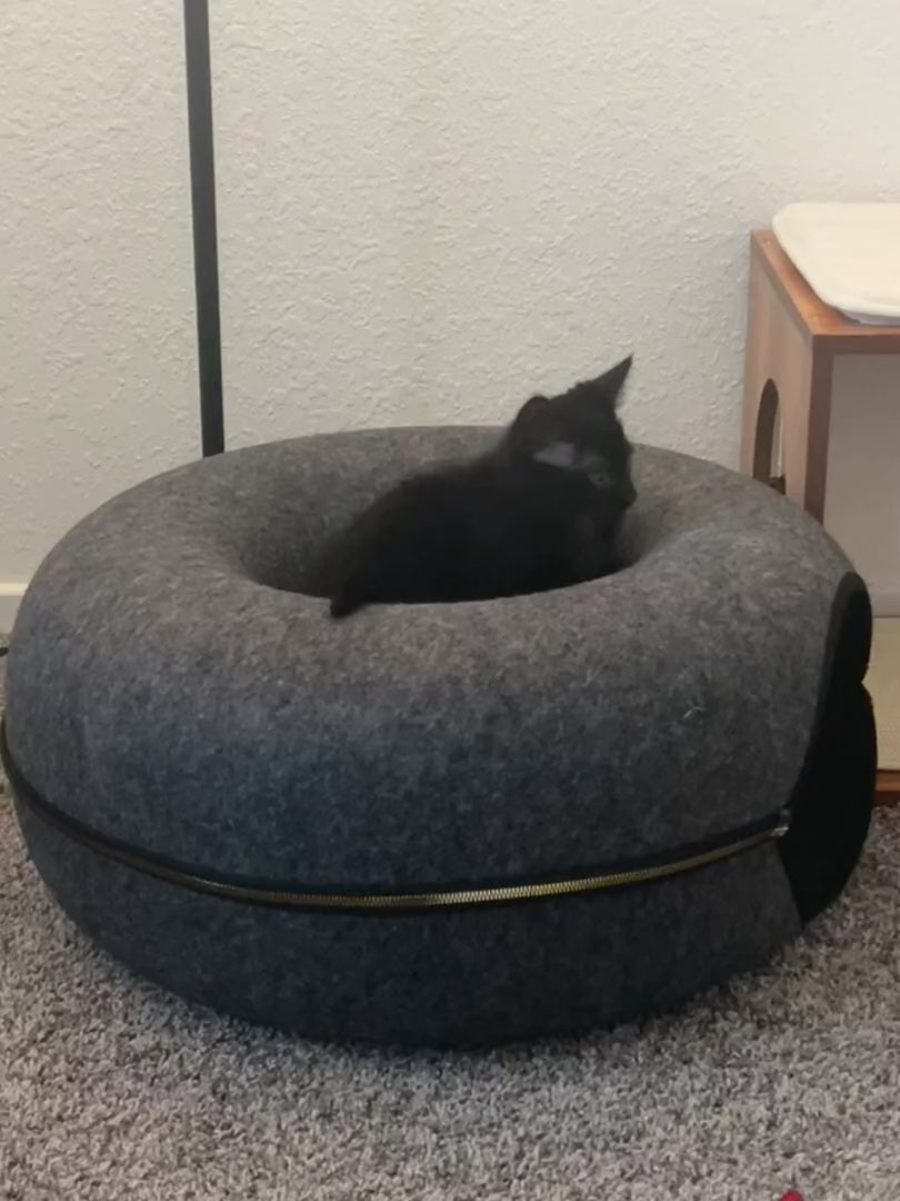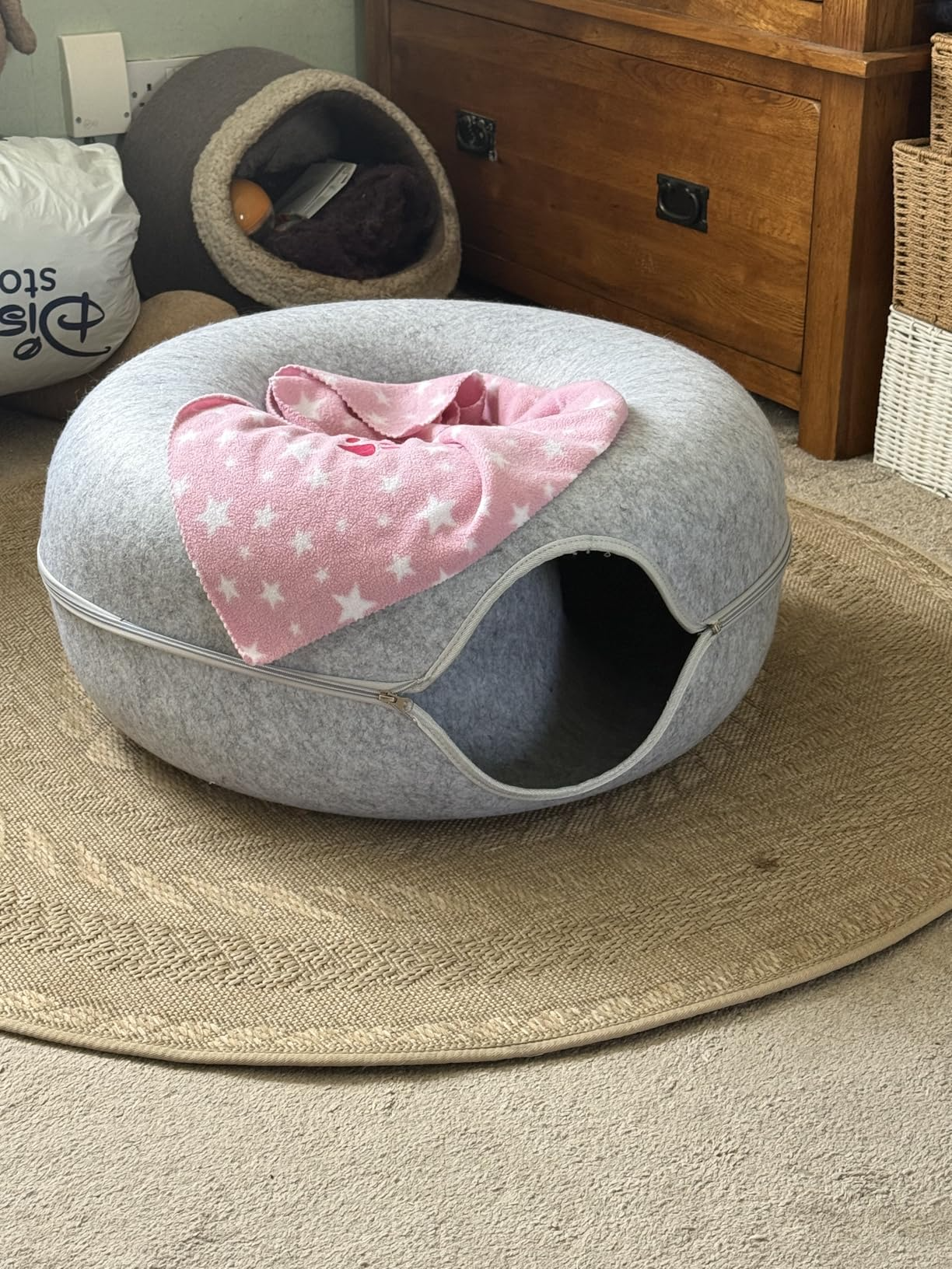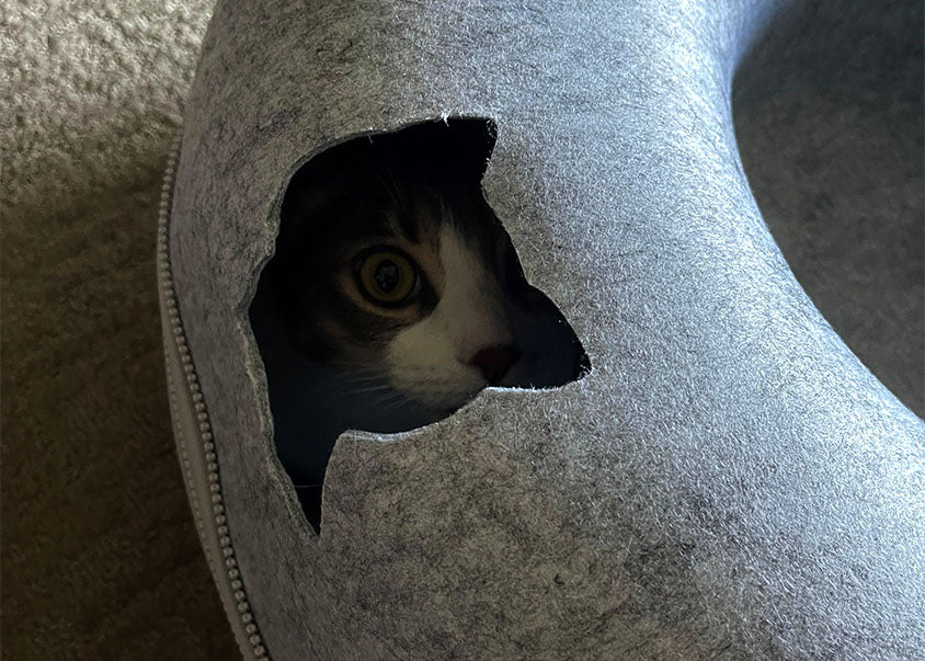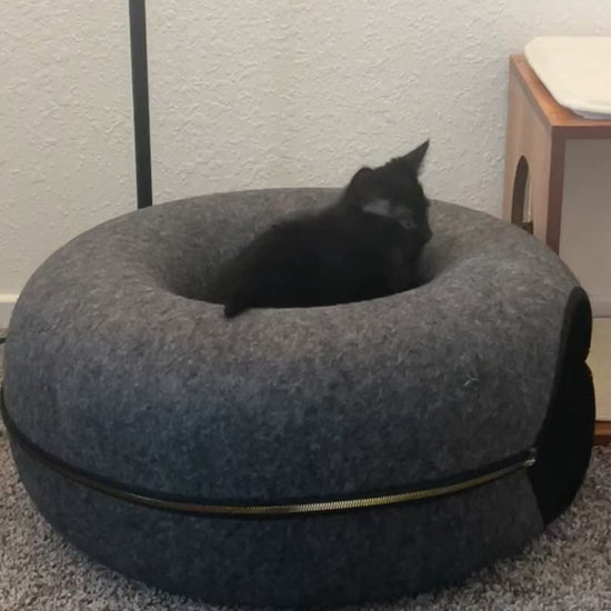 Your cat discovers the cozy donut bed on top and secure tunnel below within hours.
