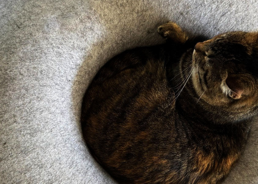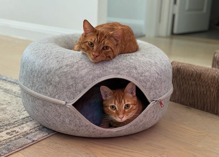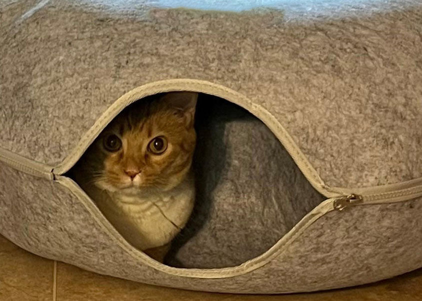Wasn't sure my 12-year-old tabby would actually use this cave...couldn't have been more wrong! She absolutely loves it. Serves as her safe retreat when the house gets busy and her favorite nap spot during quiet hours. She sleeps curled up inside and sometimes stretches out on top. I was amazed how quickly she took to it - used it the very first day and hasn't missed a day since. The wool-felt quality is impressive and even after months of daily use, it still looks perfect. Best purchase I've made for her senior years!